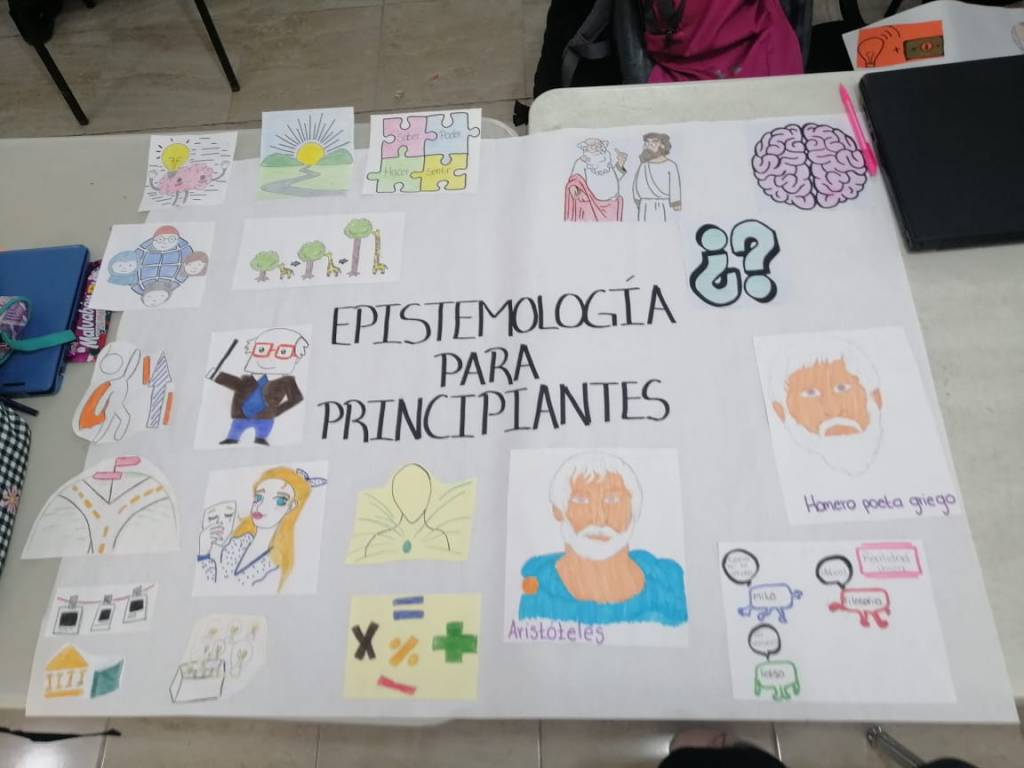La actividad consistió en realizar la lectura de “Epistemología para principiaste” capitulo 1en equipos que ya se encontraban asignados desde el trabajo anterior, para sacar puntos o ideas claves que se tendrían que representar con dibujos y así realizar un mapa conceptual para después presentarlo ante la clase. Este mapa tendría que contar con ciertos aspectos dados por la maestra, como la colocación de las imágenes, la creatividad, el uso del color, palabras, entre otros como medio de calificación.